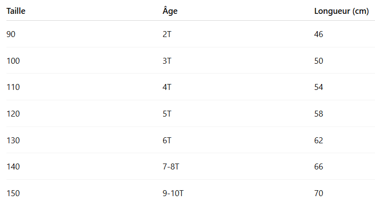 Si votre enfant est entre deux tailles, privilégiez la taille supérieure pour plus de confort et de chaleur.