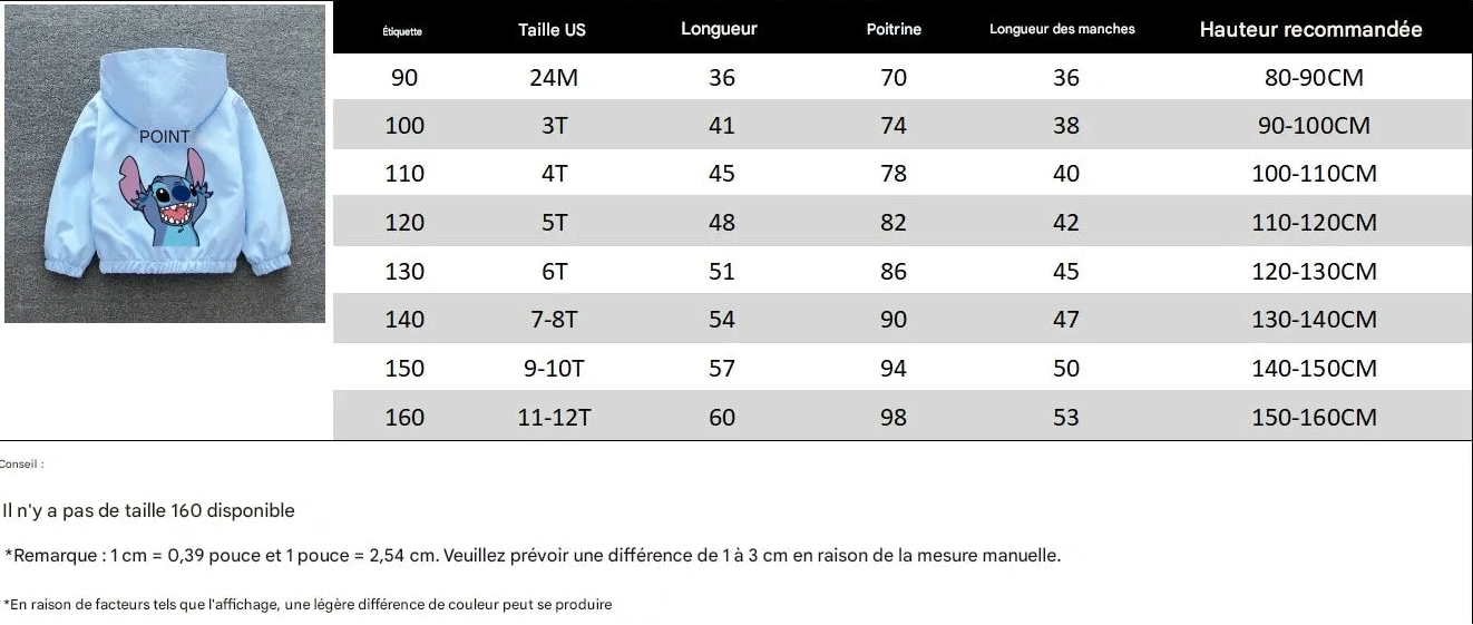 Avec son motif Stitch irrésistible, cette veste devient vite le vêtement préféré des petits fans du célèbre extraterrestre bleu.
