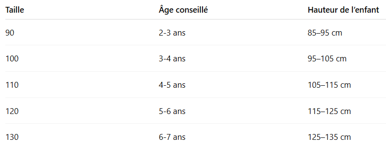Prenez une taille au-dessus si votre enfant est entre deux tailles.