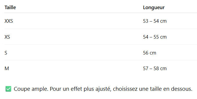 Conseil taille: les coupes étant ajustées, choisissez une à deux tailles supplémentaires après vérification du guide des tailles.