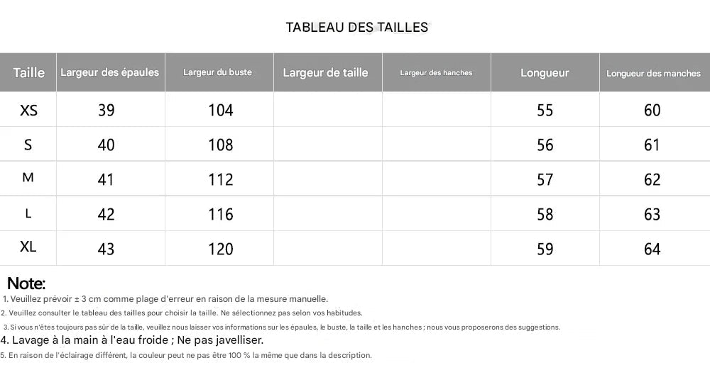 Astuce style : Portez-la avec des bottines et un jean ajusté pour un look urbain chic, ou avec une jupe midi et des collants pour un esprit plus féminin.